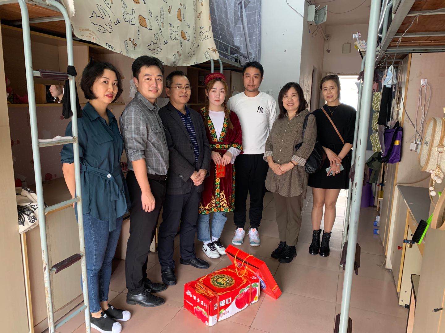 本站讯(财会金融学院 邹涛)9月30日,kaiyun开云官方网站张印华副校长、财会金融学院院长罗艳琴,党总支书记周昊、副书记邓晶及相关班主任前往宿舍进行中秋、国庆节前送温暖活动,看望了三位本院困难学生。 在男生宿舍,张校长送上了慰问金、米、油,并亲切的问候了来自万载的同学,询问了家庭、学习情况,鼓励其树立信心,将一时的困难和挫折当做磨砺,不断自我提升,在学业和未来的工作中获得更大的进步。面对学校领导和老师们的关心关怀,学生倍感亲切和温暖,表示会不忘初心,努力学习。 在女生宿舍时分别看望了来自新疆和江西分宜的同学。其中,来自维吾尔族的同学传统服饰迎接老师们的到来,张校长认真了解其家庭情况,和学习生活情况,亲切询问该生的饮食、住宿等情况,并送上慰问金、月饼和水果,并叮嘱其勤奋学习,坚定信念,以优异的成绩回报社会。 此次慰问充分体现了学院老师对困难学生的关怀,不仅送去了中秋节日的祝福、物质上的帮助、情感上的温暖,更给予了他们学校的关怀和精神上的鼓励。 财会金融学院 2020年9月30日 上一条:庆中秋 迎国庆 财会金融学院召开留校生国庆中秋座谈会 下一条:携手同行 为民服务