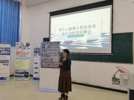 本站讯(经济管理学院 马思源)2023年11月24日下午3点,江西明月山瀚德旅游有限公司校园招聘会在学院博达楼A101教室举办,此次招聘会由在校各级旅游酒店管理专业同学参加。 江西明月山瀚德旅游有限公司注重服务品质,重视人才培养,有完善的薪酬体系,追求员工满意度。企业代表向学生介绍了企业发展规划、行业前景、薪资前景、晋升空间等信息,及时为学生答疑解惑。来到现场的学生主动与企业沟通交流,求职意愿非常强烈,现场人气旺盛,参会的学生表示,感谢学院搭建就业平台,为我们创造就业机会。 此次校园招聘会的成功举办,帮助在校学生了解就业方向,促进学院高质量就业。 上一条:经济管理学院举办“旧雨新知轻奢民宿”校园招聘会 下一条:全国职业院校税务竞赛