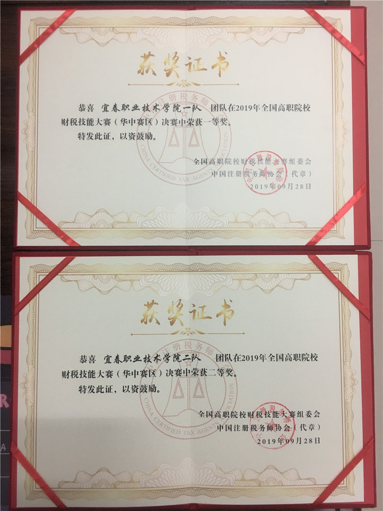 全国职业院校税务华中赛区一等奖