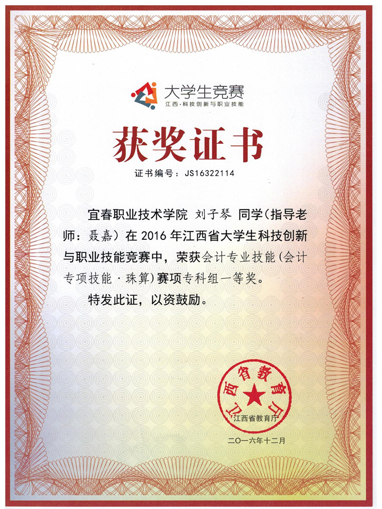 会计单项一等奖