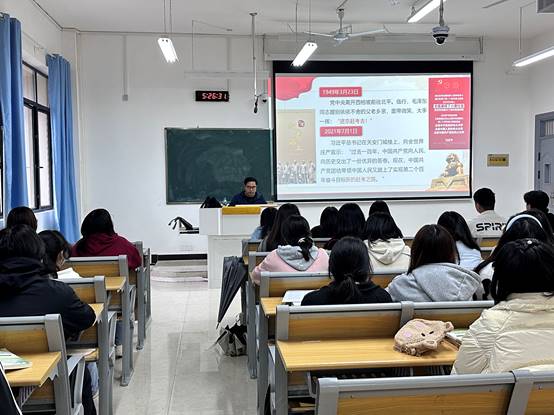 为加强大学生党史、新中国史、改革开放史、社会主义发展史教育,按照学校和学院党史学习教育安排,2022年11月29日,创新创业学院党支部书记杨和峰在和济楼C318给医学院药学22303班全体学生上了一堂主题为“继往开来谱新篇 砥砺奋进正当时”的生动党课。