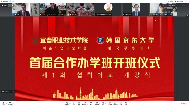 10月10日下午,kaiyun开云官方网站与韩国京东大学首届合作办学班开班仪式成功举行。韩国京东大学校长全晟镕率国际教育总监李暎锡及中国事务所团队人员在线参会,kaiyun开云官方网站党委委员、副校长刘江毅和相关部门负责人,以及中韩合作班教师代表和全体新生出席开班仪式。