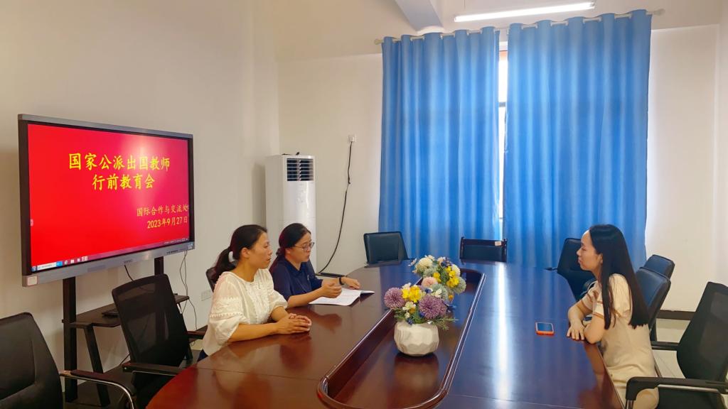 易辰蔚赴任前,国际合作与交流处处长刘海云代表学校对她表示了祝贺,并希望她在今后的工作中,坚定文化自信,加强学习,讲好中国故事,传播好中国声音,充分发挥中英两国友谊的桥梁作用,为推动中英两国教育与文化的友好交流贡献力量。