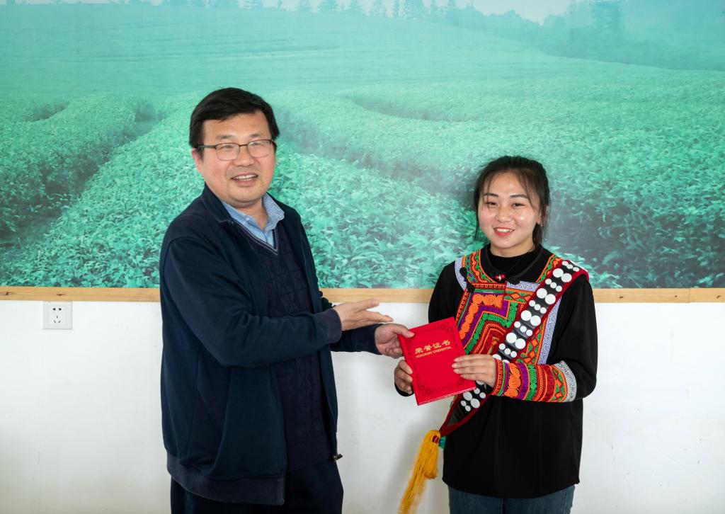 开云官网领导为在采茶中获奖的同学们颁发了证书。