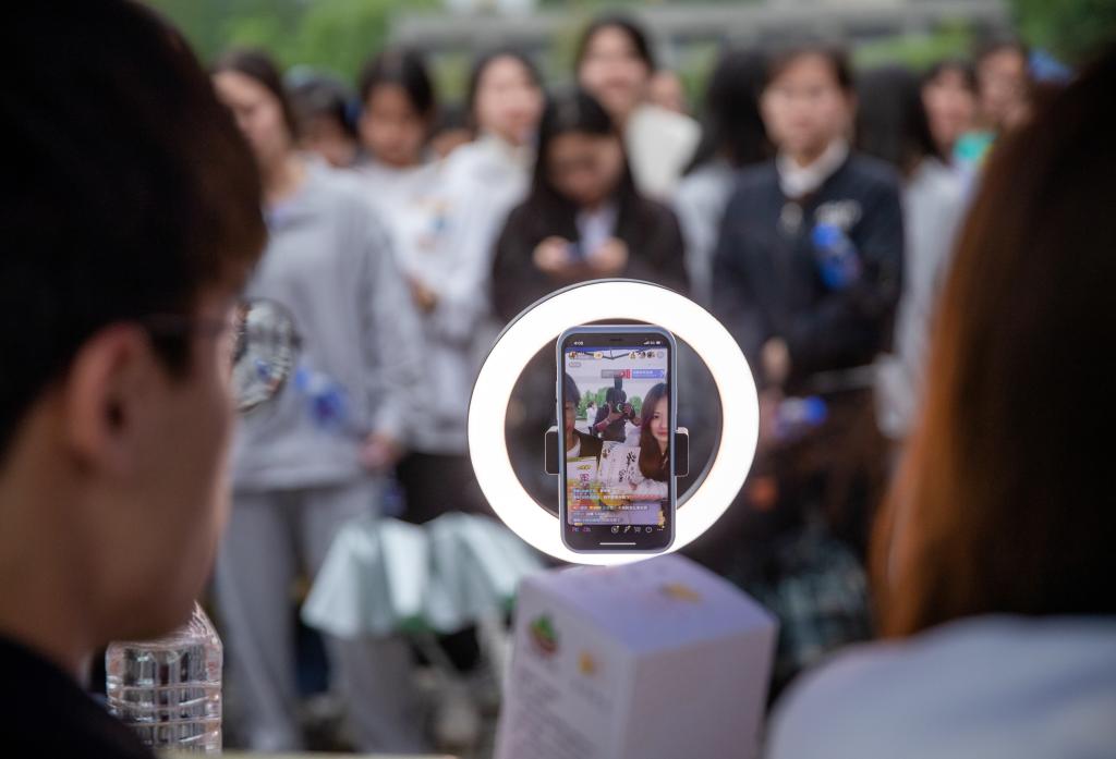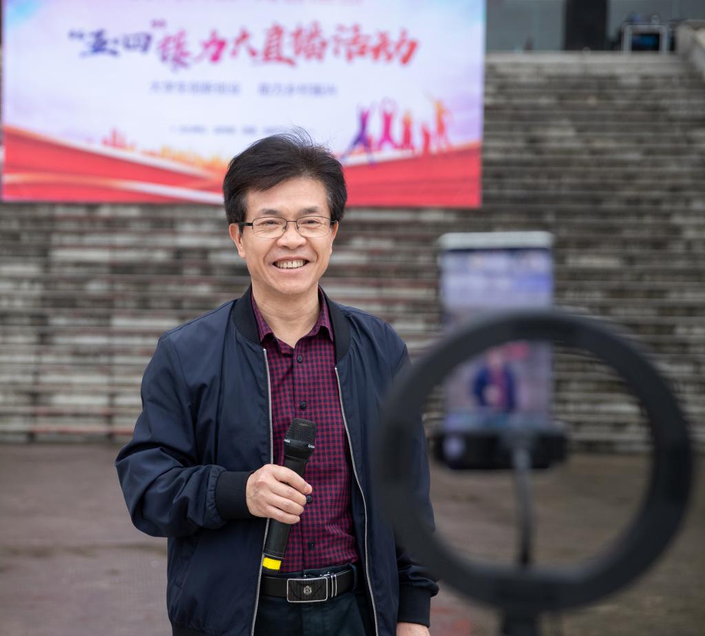“我宣布,‘五·四’接力大直播活动正式开始!”校党委副书记、校长杨云山话音刚落,各团队纷纷上线抖音,向大家讲解自己负责的农产品,直播带货活动如火如荼地进行着。