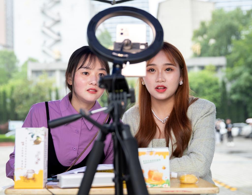 本次活动直播间总人气量达39700人次,售出必选品蜂蜜71单,自选品蛋挞、蛋糕等381单,成交额约7000余元,其中“黄岗味道”树参蜜、百花蜜受热捧。(摄影 党委宣传部 欧阳富萍)