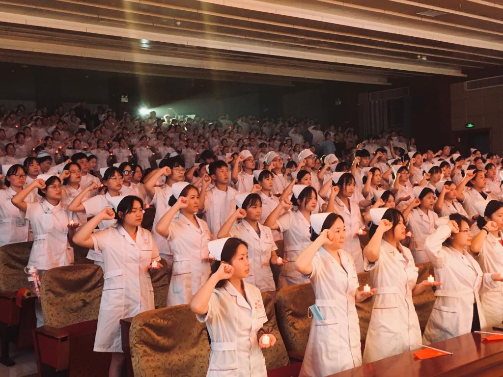 一顶燕帽、一身白衣、一束烛光、一段誓词,是使命和专业精神的传承。护生们身着圣洁的白衣,面带微笑、步态优雅,恭敬地来到护士前辈面前,缓缓下蹲,虔诚谦虚地承接前辈授帽。何新华老师带领全体护生庄严宣誓:要谨记南丁格尔无私奉献的精神,践行救死扶伤的使命,更积极地投入到医疗卫生事业建设发展中!