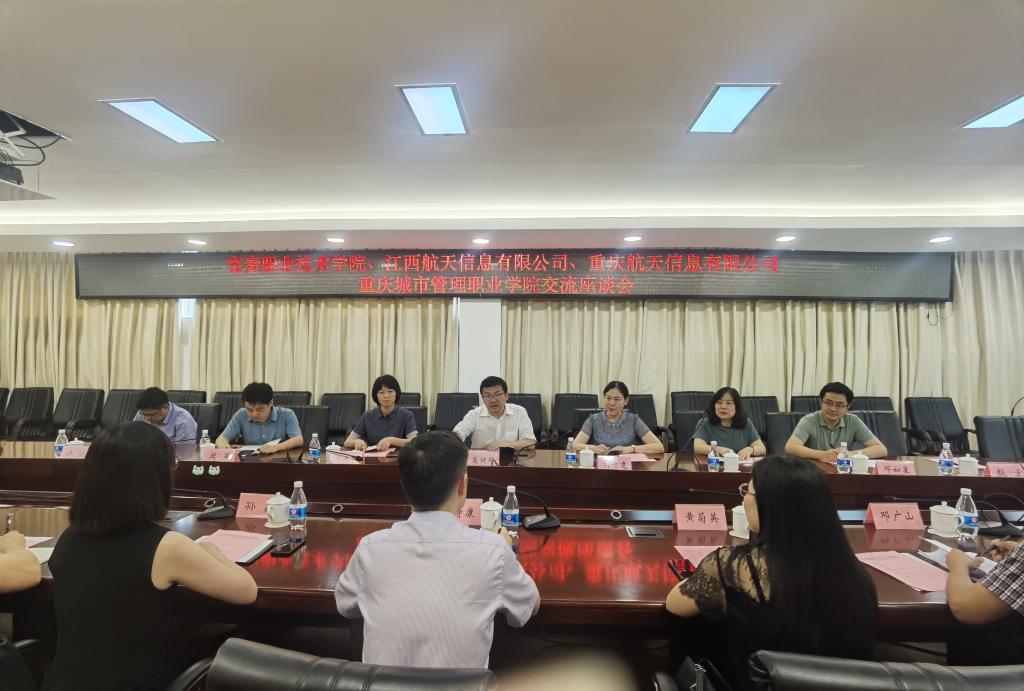 双方围绕学校党建、思政工作、建设产教基地、校企合作等方面进行了深入交流。重庆城市管理职业学院重点从基本情况、特色亮点、基层党组织考核、品牌建设、干部管理等方面介绍了该校党建工作的经验做法,分享了队伍建设、机制改革、育人实践等方面的思政教育工作建设情况。随后,双方就产教融合、校企合作等方面的具体问题进行了深入细致的探讨交流。