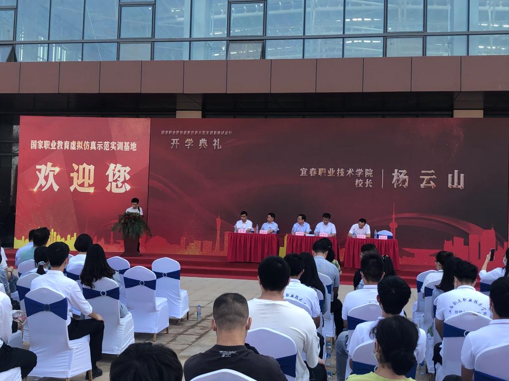 本站讯(医学院 潘锋钢)9月23日上午,教育部和江西省共建的国家职业教育VR虚拟仿真示范实训基地试运营开班典礼在基地大赛馆前举行。省教育厅副厅长裴鸿卫出席并讲话。开班典礼由江西华天虚拟仿真示范基地有限公司董事长袁敏主持。开云官网党委副书记、校长杨云山参加活动并讲话。副校长易滨秀 、招生处处长彭艳飞、护理学院院长熊杰平、医学院副院长潘锋钢陪同参加。
