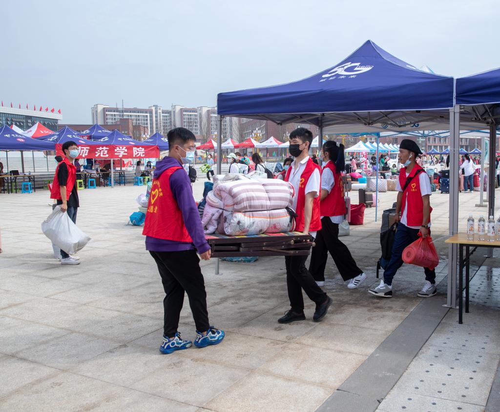 进校门时,为做好疫情监测、排查、预警等工作,工作人员们为同学们测量体温、并提醒大家出示健康码、给行李消毒、为新生和家长解惑答疑。各学院领导、辅导员带领迎新志愿者积极为新生做好服务工作,各岗位迎新工作人员密切配合,迎新现场秩序井然,各环节衔接紧凑,为新生们提供了人性化、便捷化的周到服务。