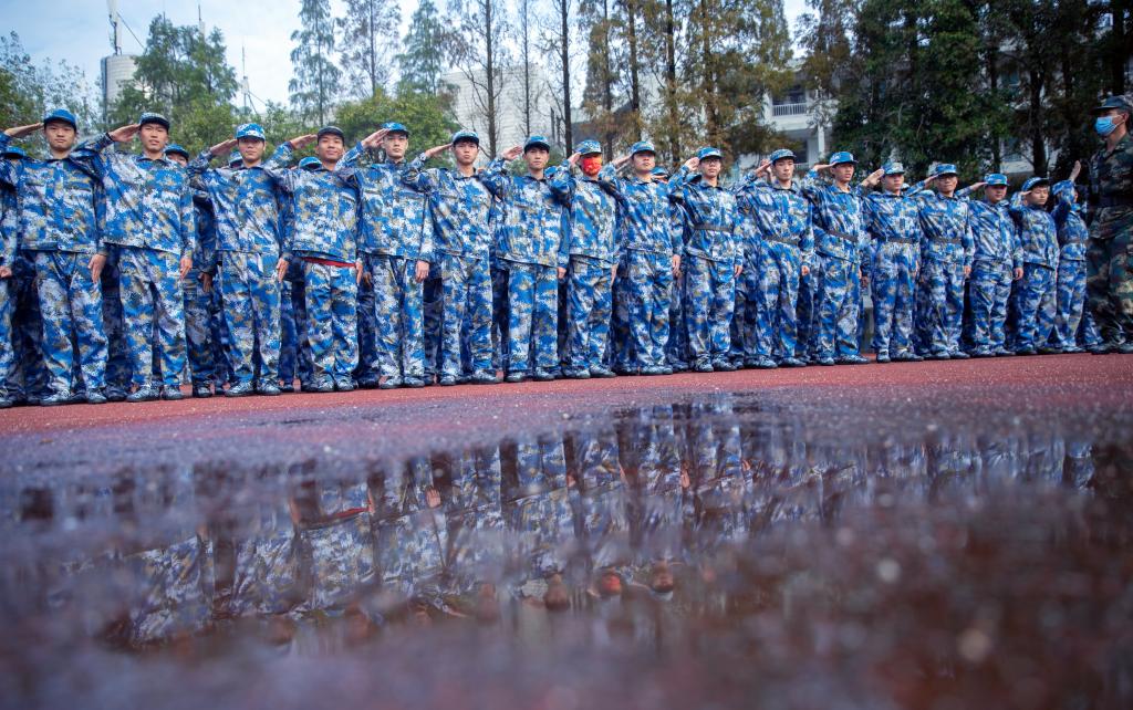 廖秋劲代表学校向2021级全体新同学表示热烈的欢迎,向支持学校军训工作的部队官兵表示衷心的感谢,并对全体参训新生提出了几点要求:希望同学们一要虚心学习,学习军人的好思想、好作风和光荣革命传统,学习他们崇高的爱国主义情怀和艰苦奋斗精神;二要刻苦训练,勇敢接受各种天气的考验,流血流汗不流泪,掉皮掉肉不掉队,在军训中磨练意志品质;三要严守纪律,严格遵守军训纪律,雷厉风行,令行禁止,在思想上、作风上成为一名合格军人;四要团结协作,自觉地将自己融入集体,服从集体,建立起彼此间浓厚的友情,团结合作,步调一致。