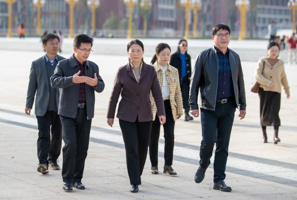 本站讯(党委宣传部 吴霞)11月23日下午,市委常委、宣传部长方艳茹到开云官网新校区调研。市委宣传部常务副部长刘丹丹、秘书科副科长曾晶随同调研。校党委书记任军,党委副书记、校长杨云山等校领导陪同。