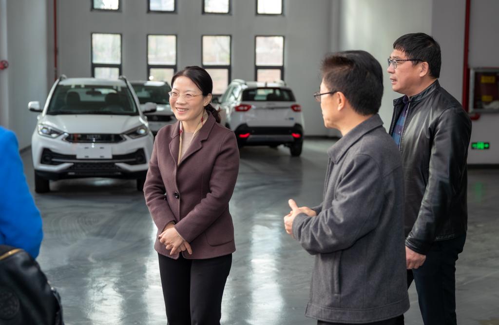 在新校区示意图前,任军向方艳茹介绍了新校区建设情况。随后,方艳茹一行先后来到国轩产业学院、宜春市公共实训基地等处实地查看,了解学校产教融合、学生实践实训情况。