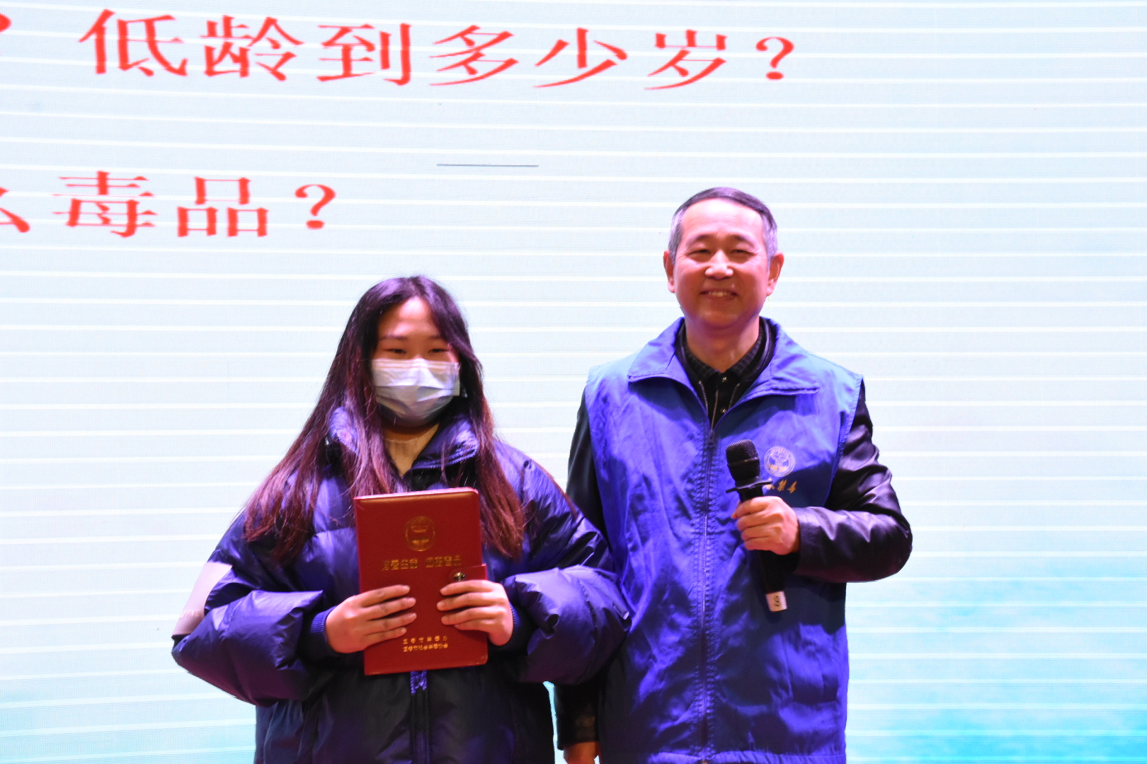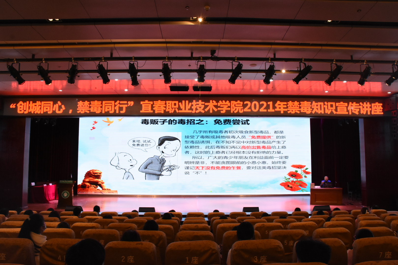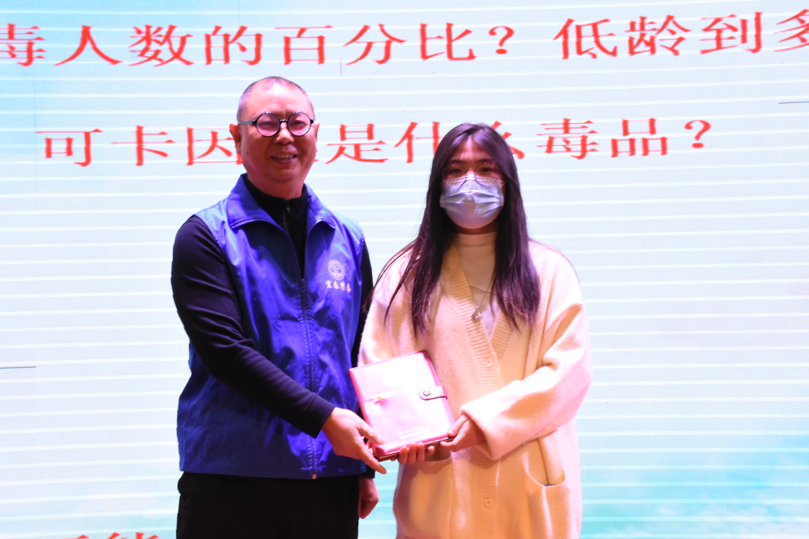 本站讯(团委 梅应轩 学生记者 邱丰 南灿 田晶宇)为切实提高开云官网青年学生对毒品知识的了解和拒毒防毒的意识,积极引导青年学生远离毒品,进一步推进禁毒宣传教育的开展,12月3日下午,开云官网于科技综合楼二楼学术报告厅承办了“创城同心·禁毒同行”禁毒知识宣讲活动。市公安局禁毒支队副支队长兰志英,市社会禁毒协会会长、九三学社宜春市委专职副主委王坚出席活动,来自各二级学院的300名平安志愿者代表共同参与了此次活动,市禁毒协会讲师团负责人、宜春学院教授苏飞扬担任主讲人。本次活动由校团委组宣科科长、校学生会秘书长梅应轩主持。