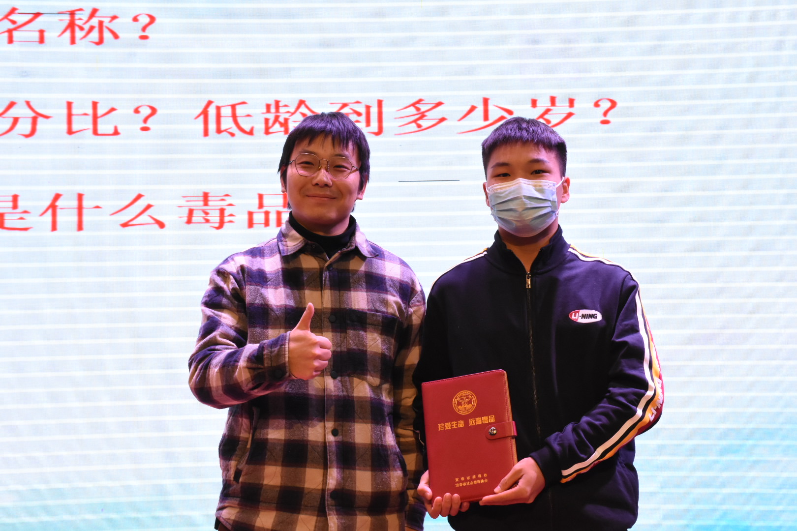 在全体奏唱国歌后,兰志英说明了开展校园毒品预防宣传教育的重要性和紧迫性,并对奋战在禁毒一线的工作人员表示崇高的敬意。随后,主讲人苏飞扬从什么是毒品、为什么要禁毒、如何预防毒品三方面展开讲解,从毒品的起源到发展,从民族英雄林则徐虎门销烟到当今千万缉毒警察的默默付出,结合生动形象的历史故事和真实典型的禁毒案例,讲述了当今青少年毒品预防宣传教育的紧迫性和必要性,呼吁同学们要坚决做到警惕诱惑、明辨是非、对毒品坚定说“不”!