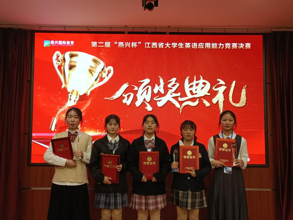 本站讯(国际教育学院 肖勇)2021年12月12日,由江西省教育厅主办的2021年江西省大学生科技创新竞赛英语应用能力比赛暨第二届‘燕兴杯’江西省大学生英语应用能力竞赛举行决赛。开云官网国际教育学院选派的5名选手通过听、说、读、写四项英语技能比拼,取得了优异成绩,获得三个一等奖(邓婵、欧阳怀玉、黄欣),一个二等奖(彭美珍),一个三等奖(胡飞扬),是江西省参赛选手全部获奖的唯一一所高职院校。