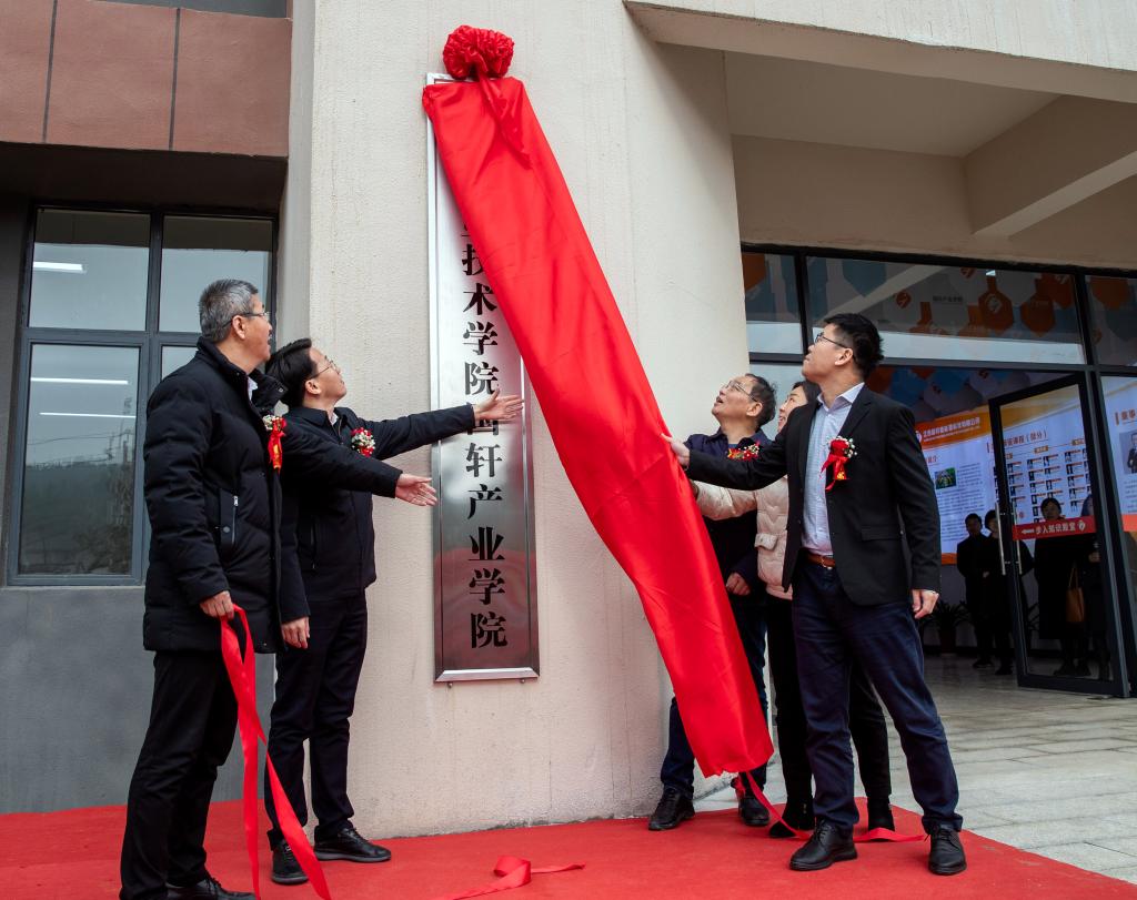 紧接着,黄章喜董事长、杨云山校长就国轩产业学院合作协议进行签约。随后,市委常委、组织部部长徐云涌,市政府副市长兰亚青,市经开区党工委副书记、管委会主任何敏,国轩高科董事会秘书潘旺和江西国轩新能源科技有限公司董事长黄章喜等为国轩产业学院揭牌。