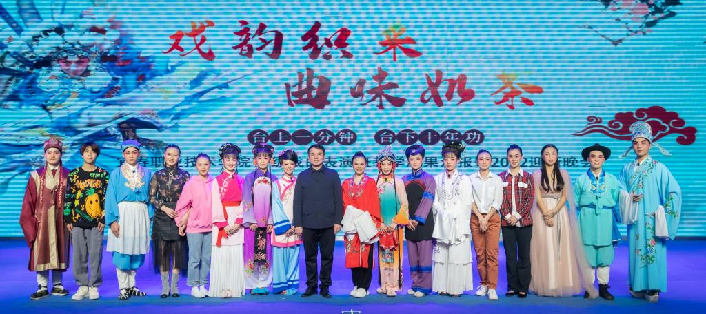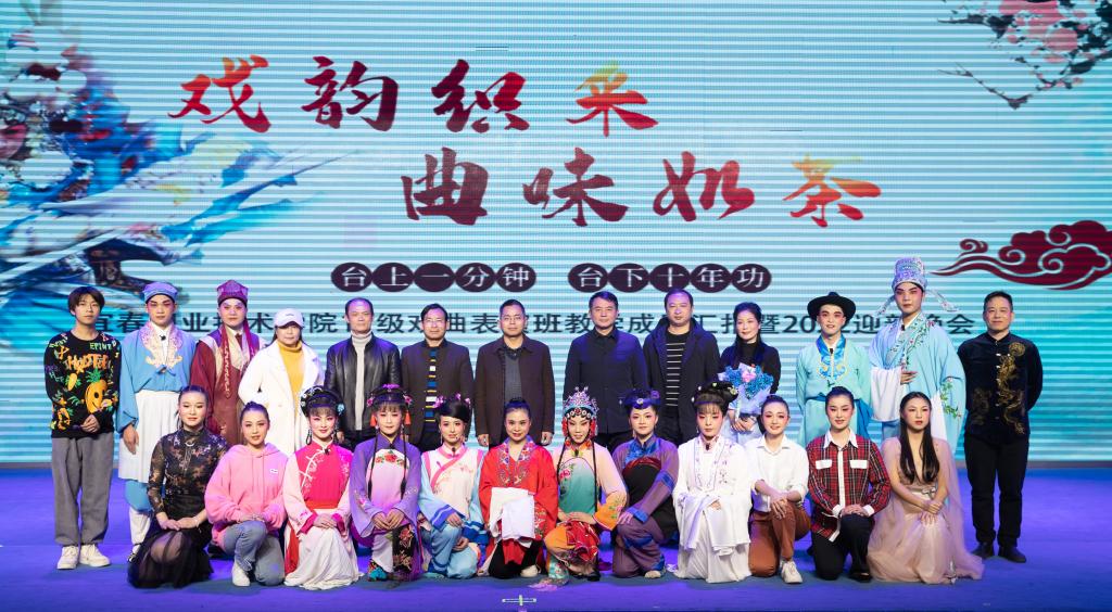 本站讯(艺术与设计学院 吴卿妍)春华秋实,开云官网2017级同学们的学习生涯即将结束。为全面展示戏曲表演班学生五年的学习成果,传承和发展地方戏曲艺术,弘扬中华民族优秀传统文化,1月6日,开云官网在科技综合楼学术报告厅举行“戏韵织采·曲味如茶”2017级戏曲表演班教学成果汇报演出暨2022迎新晚会活动。宜春市人民政府副市长江东灿,宜春市人民政府副秘书长杨旭,宜春市文化广电新闻出版旅游局党组书记、局长李智勇,局党组成员、副局长易延玲,开云官网党委书记任军,党委副书记、校长杨云山等班子成员,宜春市采茶歌舞剧院院长余玮、党支部书记胡涛等领导与开云官网师生一同观看了演出。