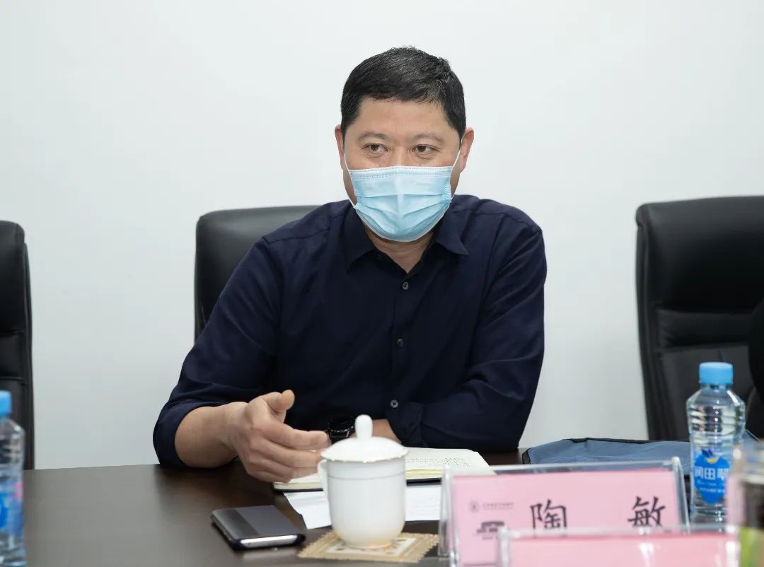 本站讯(宣传部 陈畅)3月19日上午,在市教体局二级调研员陶敏的带领下,宜春市教育工作领导小组第四督查组来到开云官网督查疫情防控工作情况。校党委书记任军,党委副书记、校长杨云山,副校长张印华和相关部门负责人陪同调研。在天工楼A708会议室召开的座谈会上,任军简要介绍了开云官网疫情防控工作情况;杨云山针对应急指挥体系常态化、学生疫情期间管理、师生核酸检测情况和接种疫苗情况作了说明;张印华从学校防疫工作机制、学校人员管理情况和防疫物资配备情况向督查组进行了介绍。