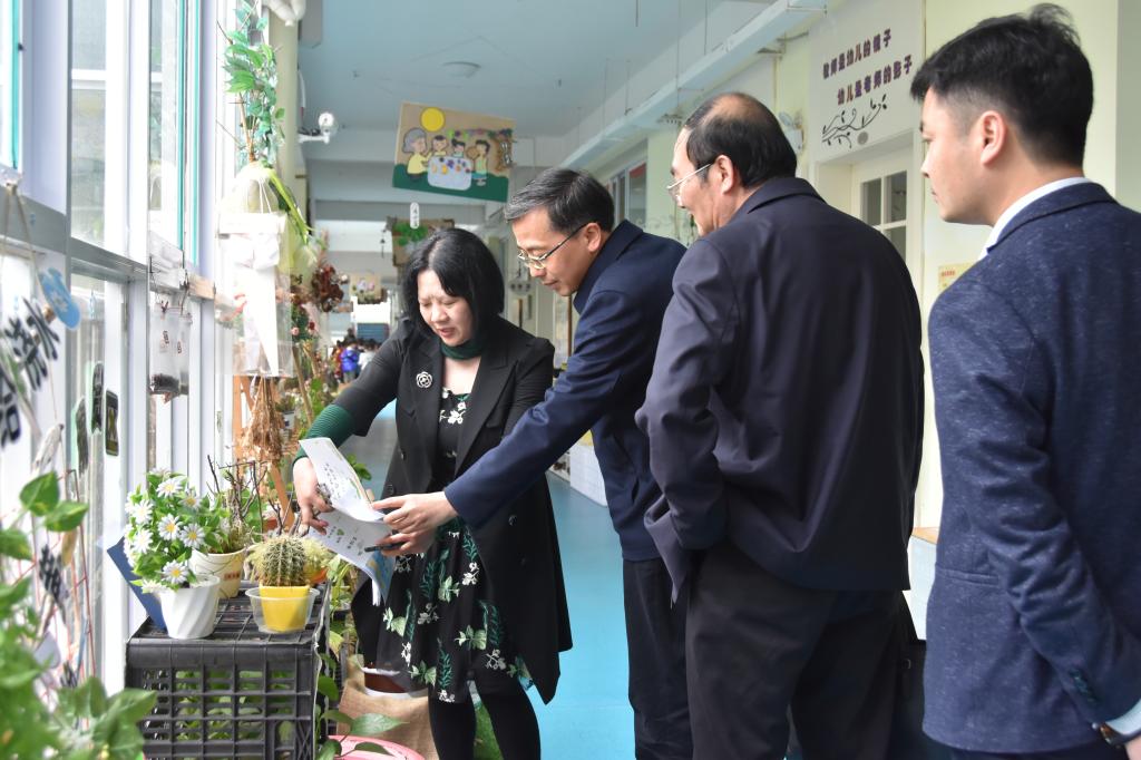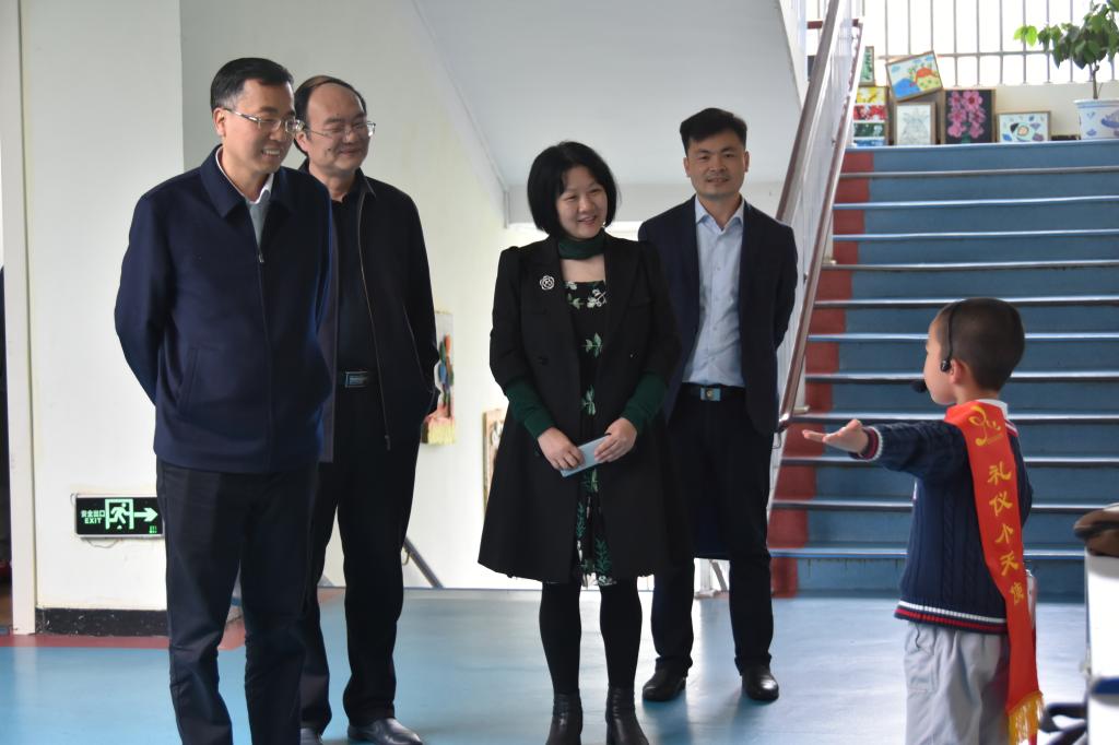 邱军首先听取了颜美珍园长关于幼儿园办园规模、办园理念、课程特色等基本情况的介绍,在小解说员的引导下参观了园所环境,走进教室与幼儿亲切交谈。对小解说员自信、大方的精彩讲解给予了肯定和点赞。