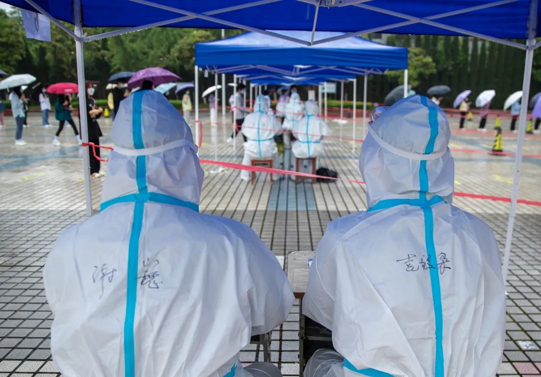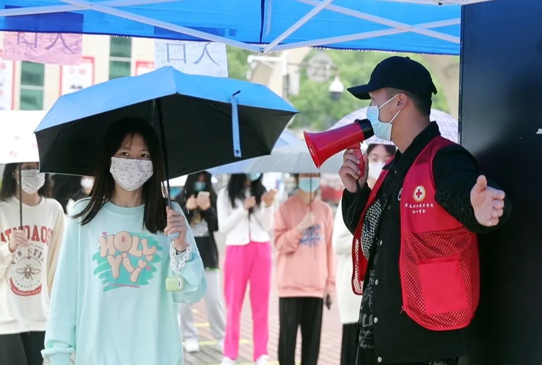 在此次检测工作中,学校快速反应、协同推进。排查组、保障组、安保组设计好路线,设置路障、警戒线,志愿者提前粘贴了900余条“一米线”地贴,方便引导师生有序排队;检测当天,排查组、防控组、安保组等各工作组,学院工作人员,志愿者冒着小雨有条不紊地维护现场秩序;各学院多次开会布置工作,师范学院实行班级网格化管理,护理学院采用“寝室长(寝室)——班干部(班级)——院领导(学院)”三级管理模式,医学院以“班主任线上、班干部线下”双重监督方式等,最大限度地节省学生排队时间,避免人员聚集;对于校内年龄较大、行动不便的老人,骨折受伤的学生和校园临时隔离区的隔离人员,专门安排医护人员上门采样;保障组及时做好检测后消杀工作,大家通力配合,确保了检测工作的安全高效。
