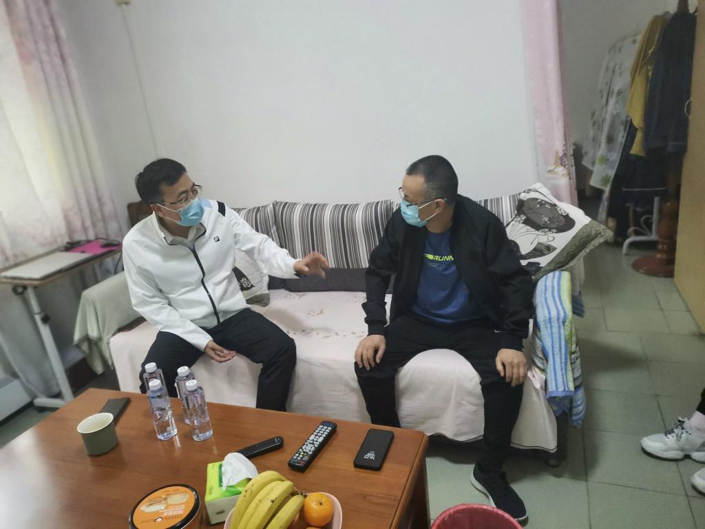 邱军与住户促膝交谈,询问他们的生活和身体健康等情况,并表达了党委行政的关心和关怀;邱军介绍了学校静态管理期间疫情防控和教育教学管理等工作,希望大家注意做好自身和家人的防护,保重好身体。他说,当前疫情形势严峻复杂,静态管理期间给住户生活带来诸多不便,学校定会尽心尽力为大家办实事、解难事,一如既往关心家属区住户,切实增强大家的安全感、幸福感,我们同心协力,共克时艰、共渡难关,一定能打赢疫情防控攻坚战。