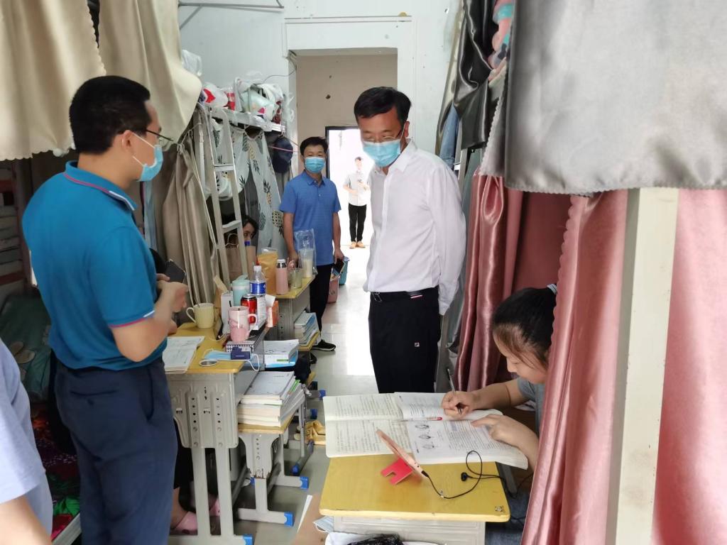 5月9日下午,邱军一行来到学生寝室,了解同学们线上学习情况。邱军询问学生,“线上教学习惯吗?”“上网课卡不卡?”“手机流量够不够?”“生活上有什么困难?”耐心听取同学们反馈的问题,并交待有关部门及时予以解决,全力做好服务保障工作。邱军鼓励同学们认真学习,注意锻炼身体,避免感冒发烧。