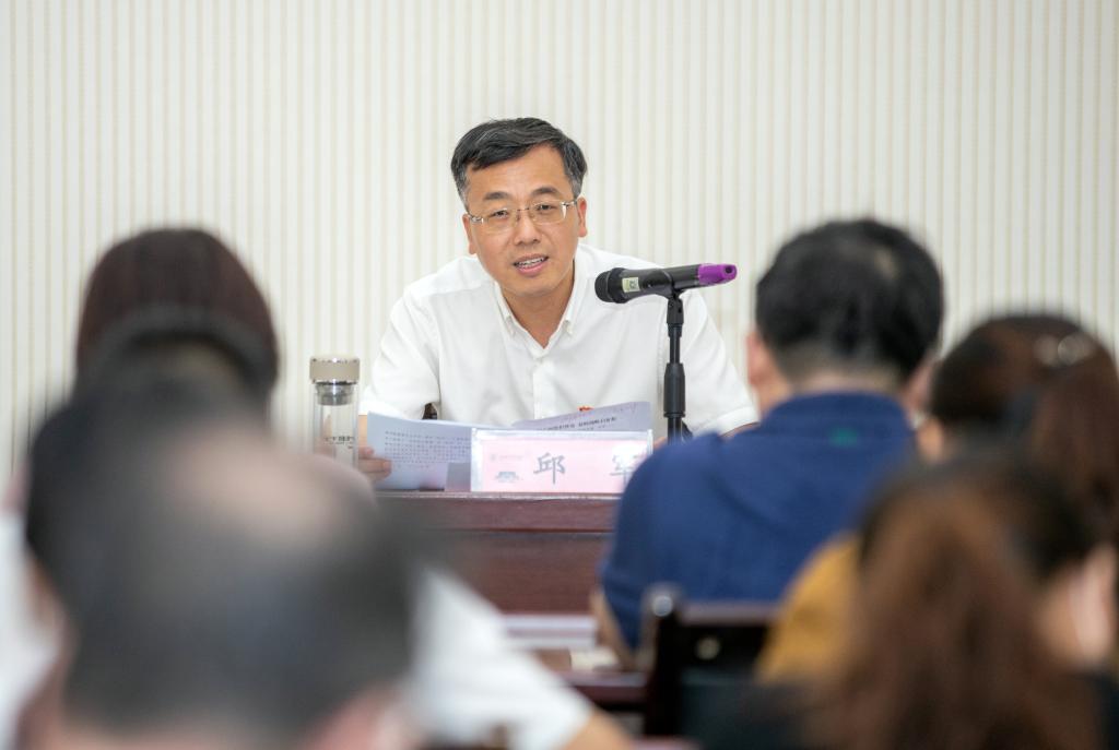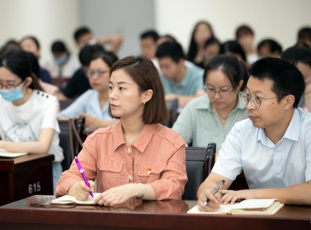 本站讯(护理学院 胡蓉)为进一步深入学习贯彻习近平新时代中国特色社会主义思想,巩固拓展党史学习教育成果,提升党员干部的素养和能力,6月29日上午,校党委副书记、校长邱军在天工楼学术报告厅为党员干部讲授“初心如磐担使命 奋楫扬帆启征程”专题党课。机关第三党支部、护理学院全体教师80余人聆听党课,党课由护理学院党总支书记胡蓉主持。