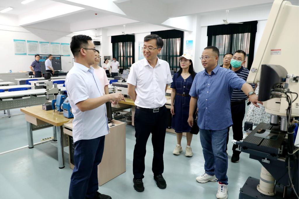 考察期间,邱军一行在九江职院副校长卢致俊及相关部门负责人的陪同下,还来到了十里校区工业工程中心,参观了现代制造中心、工业自动化实训基地、船舶轮机实训中心等实践教学场所,卢致俊从校区分布、师资队伍建设、专业建设与改革等方面介绍了学校的基本情况及改革举措。