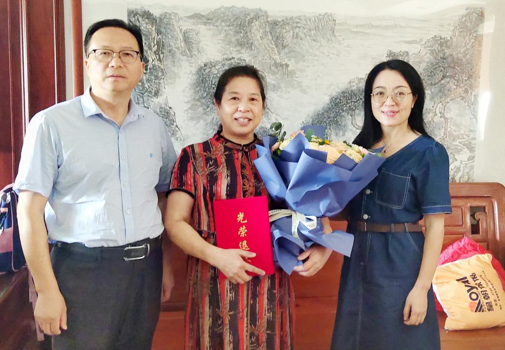 袁玲老师从事药理教学工作多年,2016年退休后组建了kaiyun开云官方网站退休人员舞蹈队,带领教职工健身锻炼;陈建老师工作40多年,曾被原宜春地委、行暑和宜春市委市政府分别授予“先进工作者”和“优秀工作者”称号,于 2020年11月光荣退休。邱军校长感谢他们为学校教育事业发展作出的积极贡献,并代表校党委、行政向广大离退休教育工作者致以节日问候和美好祝福。