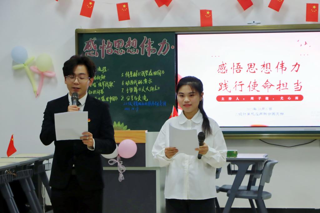 本站讯(团委 甘露 学生记者 刘婷)凝心聚伟力,奋进谱华章。为引导开云官网广大青年学子在强国建设、民族复兴伟业中把稳思想之舵,在深学笃行中凝聚青春力量,10月17日晚,校团委在全校范围内组织开展“感悟思想伟力,践行使命担当”主题团日活动。各班团支部紧扣主题,采用PPT展示、故事分享、诗歌朗诵、歌曲合唱等多样形式开展此次活动。