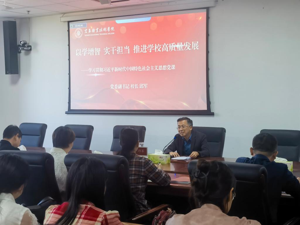 本站讯(护理学院 黄成)为学习贯彻习近平新时代中国特色社会主义思想,加强支部联系,10月31日,党委副书记、校长邱军为机关第五党支部、护理学院党总支全体党员上了一堂以“以学增智,实干担当,推进学校高质量发展”为主题的党课。