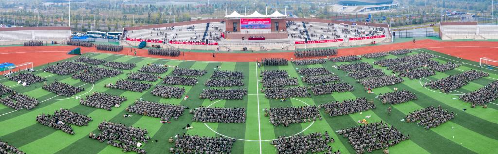 二十二支在军训会操中表现优异的连队作为代表展示训练成果。在教官的带领下,他们身着迷彩服,迈着坚定整齐的步伐、喊着铿锵嘹亮的口号,斗志昂扬地走过主席台接受检阅。立正、稍息、跨立、齐步走、敬礼……精彩的汇演为军训交上了一份高质量答卷,赢得了在场师生的掌声与喝彩。横纵清晰的方阵、飒爽干练的英姿、标准统一的动作、坚定庄重的眼神……无一不展现出2023级新生蓬勃向上的精神风貌。