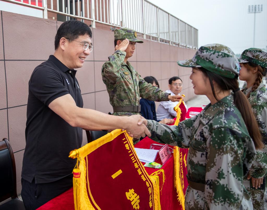 大会上,陈文涛依次宣读军训会操比赛获奖连队、优秀教官名单及精神文明奖获奖连队。与会校领导为获奖代表颁奖。