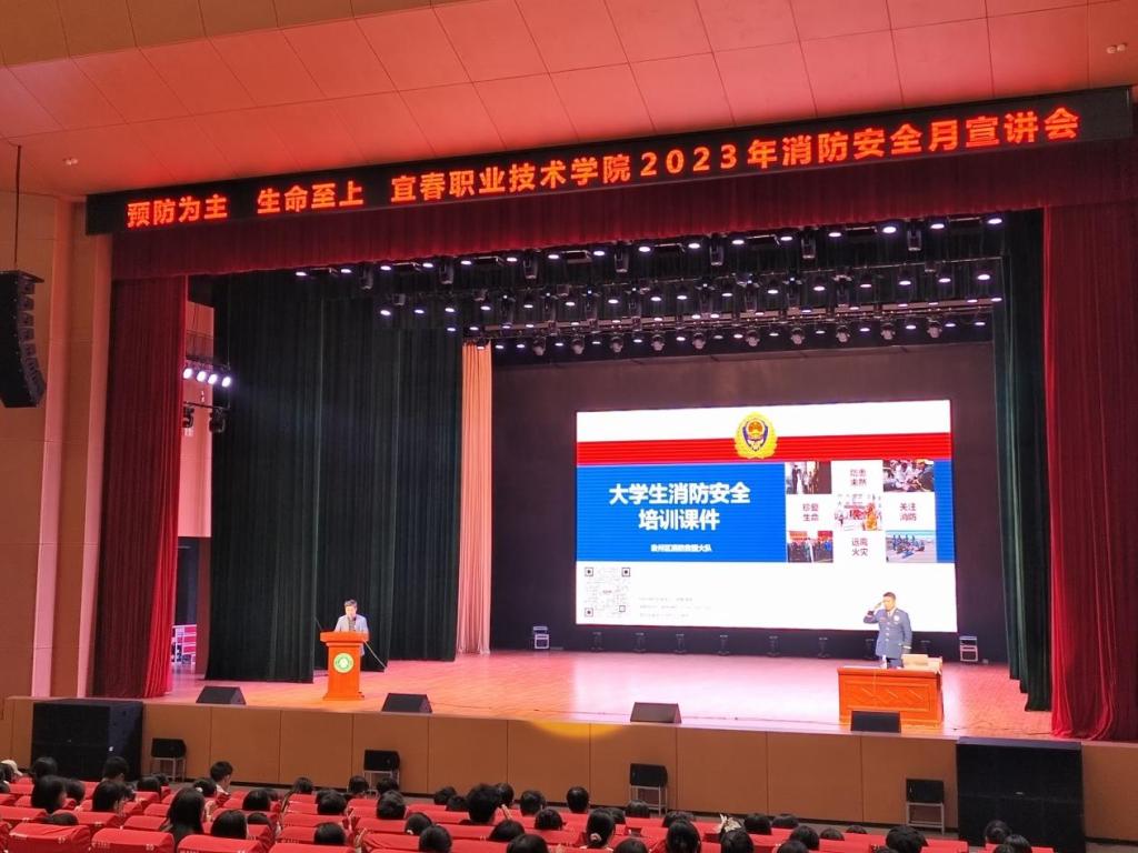 今年11月是全国第32个消防宣传月。为帮助师生们提高火灾预防意识,掌握基本的火情应急技能,11月10日上午,开云官网在出彩大会堂举办“预防为主、生命至上”2023年消防安全月宣讲会,特邀宜春市袁州区消防救援大队防火监督员熊康为师生宣讲消防安全知识。参加本次宣讲会的有保卫处、学工处及各二级学院学工科长、辅导员以及寝室长共1200余人。宣讲会由保卫处处长熊剑主持。