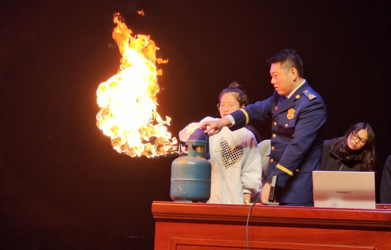 期间,熊康以有奖竞答的方式,吸引了不少师生踊跃参与到互动之中,并对如何正确使用灭火器和液化气罐着火后如何处置进行了现场教学。熊康倡导师生们要提高对存在消防安全隐患的事物辨别能力,养成良好的防火用火习惯,及时消除身边的火灾隐患。会场气氛活跃、互动精彩,参会师生深感受益匪浅。