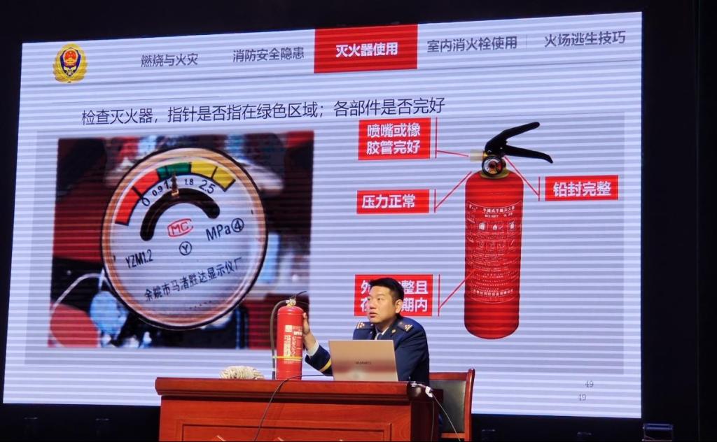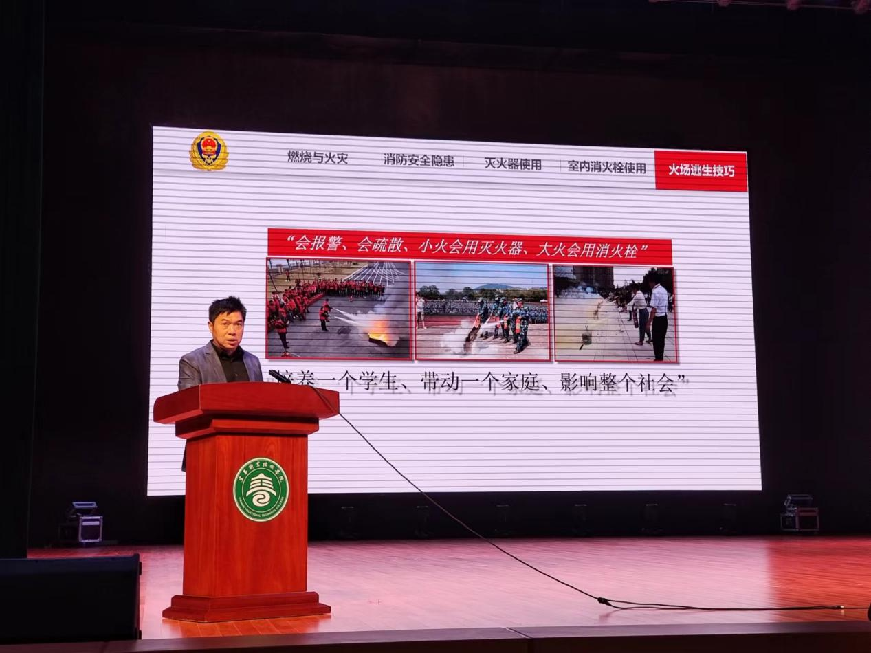 宣讲会上,熊康以校园火灾事故案例、原创消防小视频等为素材,从燃烧与火灾、消防安全隐患、灭火器使用、室内消火栓使用、火场逃生技巧等五个消防知识层面,对火灾发生的原因作深入剖析,其中包括违规使用大功率电器导致的用电火灾、违规使用蚊香等引发的宿舍火灾、电动车违规充电和燃气泄漏导致的火灾。各类触目惊心的火灾案例,让与会师生对火灾给人类社会带来的严重危害有了直观体会,同时清醒地认识到掌握消防安全知识,应用科学的预防措施是可以避免或减少火灾的发生。