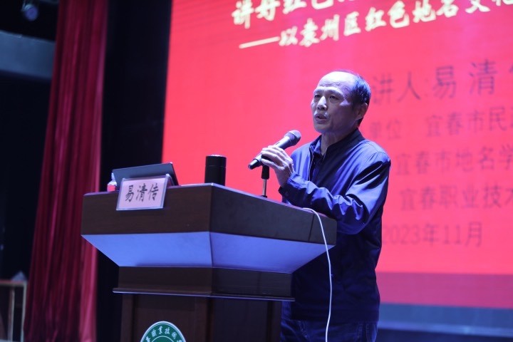 讲座中,易清传围绕主题分别从红色文化、地名、地名文化、红色地名等概念的界定;袁州区概况以及能够成为革命根据地的地理环境因素;袁州区红色地名文化传承三方面进行阐释,带领大家探寻身边的地名文化、红色足迹以及背后的革命历史故事。他着重强调,作为宜春的一分子,我们要把革命先烈流血牺牲打下的红色江山守护好、建设好,要继承优良传统,赓续红色基因,传承红色文化,在伟大建党精神的感召下,从实际行动出发,为袁州区的红色文化传承贡献出一份力量。