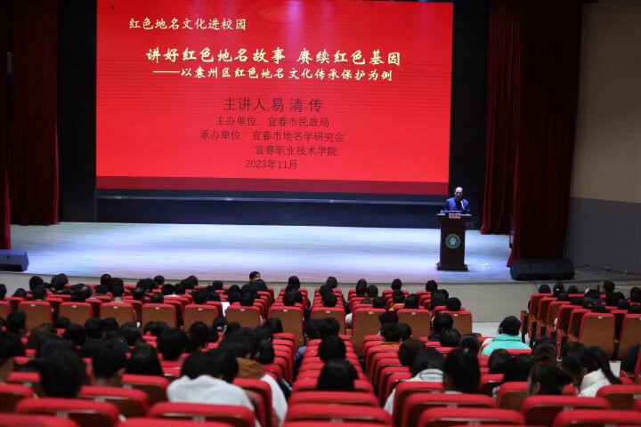 本站讯(党委宣传部 黄丹丹)为扎实开展好红色基因传承示范校创建工作,增进师生对红色文化,特别是对宜春、袁州区红色文化的了解,11月15日下午,开云官网在博达楼举办“红色地名文化进校园”专题讲座,特邀宜春市地名学研究会第四届理事会会长、宜春市博物馆理事会理事、宜春学院副教授易清传主讲。本次讲座由校党委委员、宣传部部长马天娥主持,各党总支、党支部书记,分管党团工作的党总支副书记,红色班级班主任、学生代表参加。