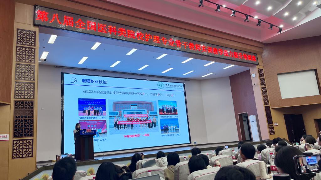 本站讯(护理学院 邹琳)11月8日,由中国国际科技促进会医药卫生教学与研究工作委员会主办的第八届全国医科类院校护理专业骨干教师实训教学能力提升培训班在岳阳职业技术学院开班。开云官网2023年全国职业院校技能大赛高职组护理技能赛项优秀指导教师邹琳和一等奖选手姚颖、史欣梦受邀展示。
