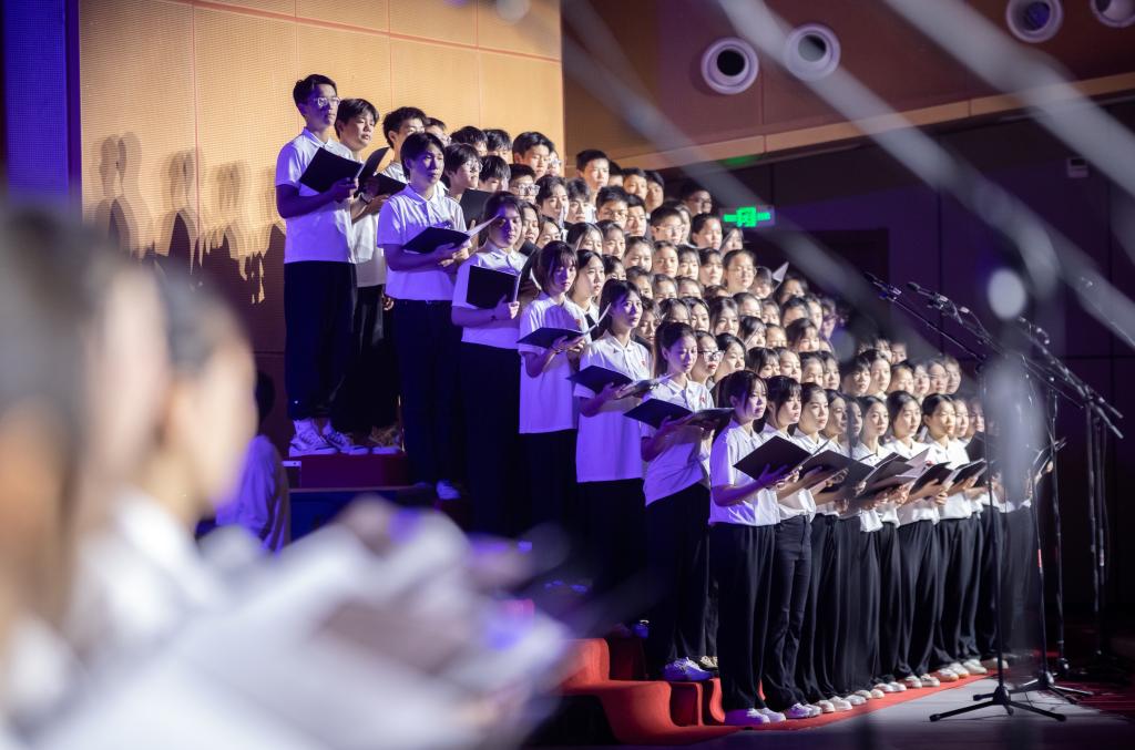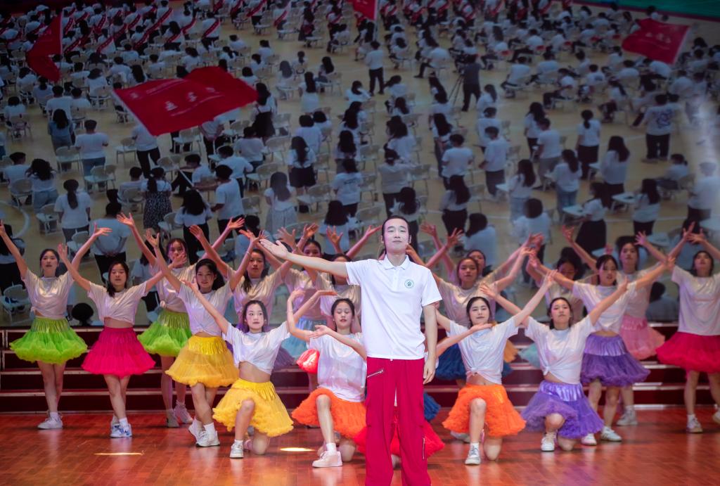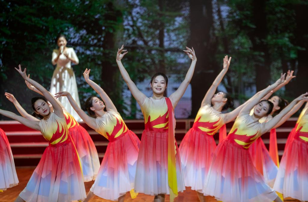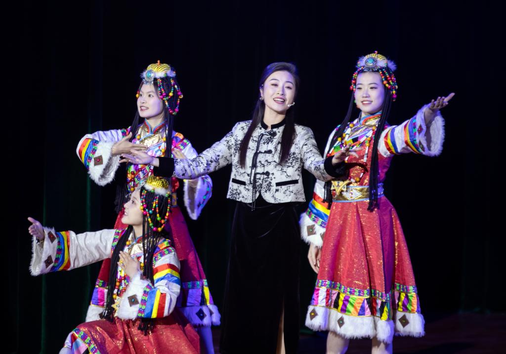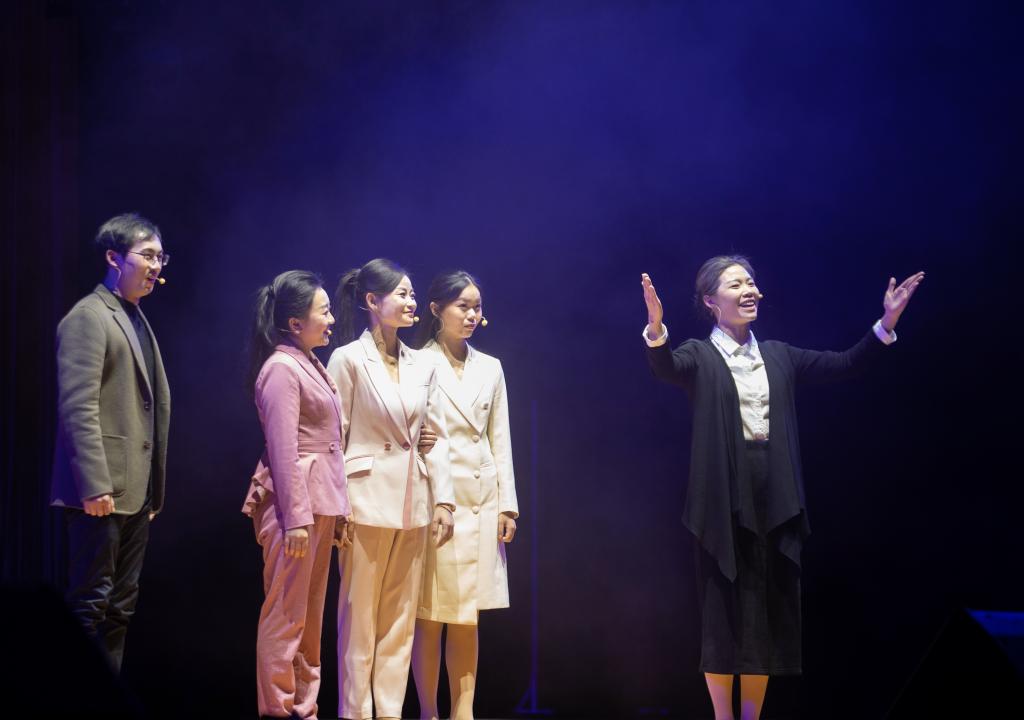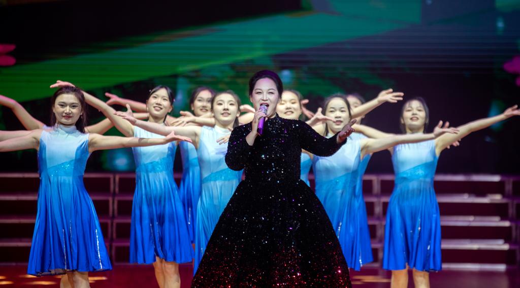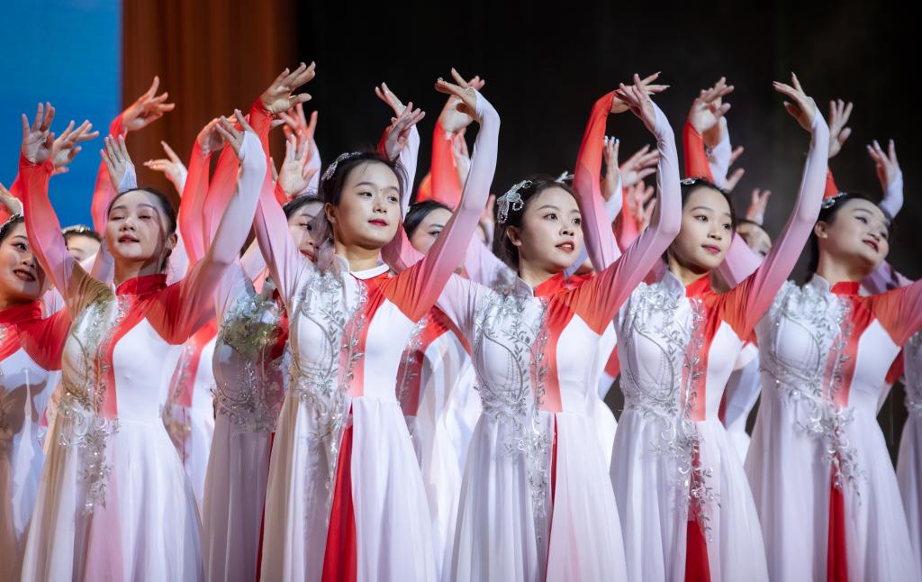 师生对唱《石榴之花》呈现了来自天南海北不同民族的学子在宜职校园像石榴籽一样紧紧抱在一起,绽放出火红石榴之花的团结之貌。