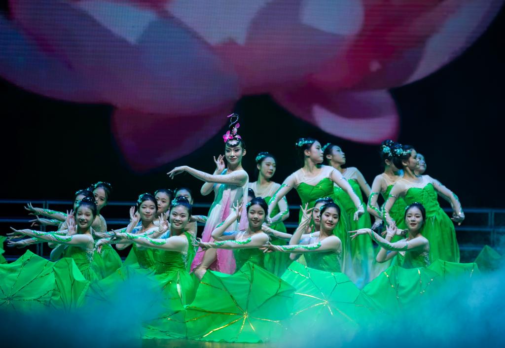 舞蹈《荷塘之绿》借生机盎然的荷塘之景展现学校生机蓬勃的发展之貌,再现“一池碧水舞荷花”动人场景。“荷花仙子”舒展娇躯,倚风而舞,在田田荷叶中绽放。