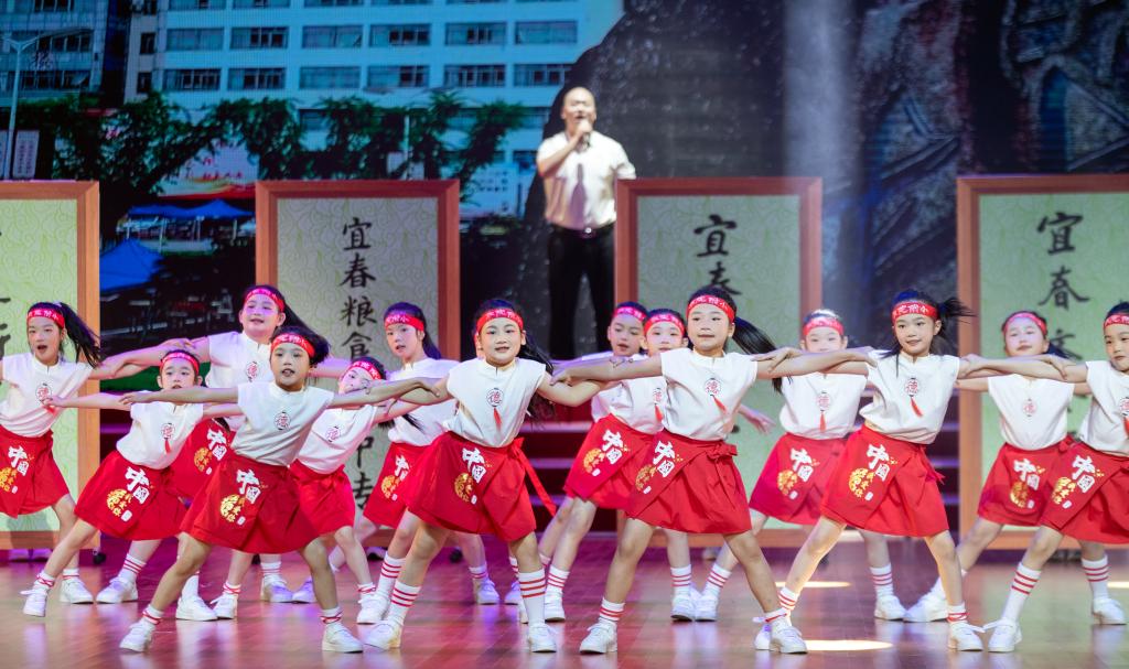“来来来,一起来追梦……”随着歌舞《快乐之子》欢快的旋律响起,七彩舞裙跃动翻飞。轻快动感的歌声、活力四射的舞步彰显新时代宜职学子青春朝气的蓬勃风貌。
