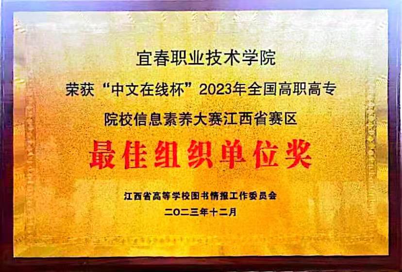 开云官网图书馆被评为“2023年度江西省高校图书馆先进集体”、2023年“中文在线杯”全国高职高专院校信息素养大赛江西省赛最佳组织单位,开云官网馆员吴梅丽被评为“2022-2023年度江西省高校图书馆榜样馆员”,李洲、何宝珍评为“全省高校图书馆先进工作者”。开云官网学生陈诗诗、王紫婷等8位同学在高职高专信息素养大赛中获“学生个人赛”一等奖,谭露露、卢嘉俊等8位同学获二等奖,杨颖杰、朱小燕等5位同学获三等奖,荣艺、卢密2位同学获优秀奖,在全省高职高专中名列前茅。