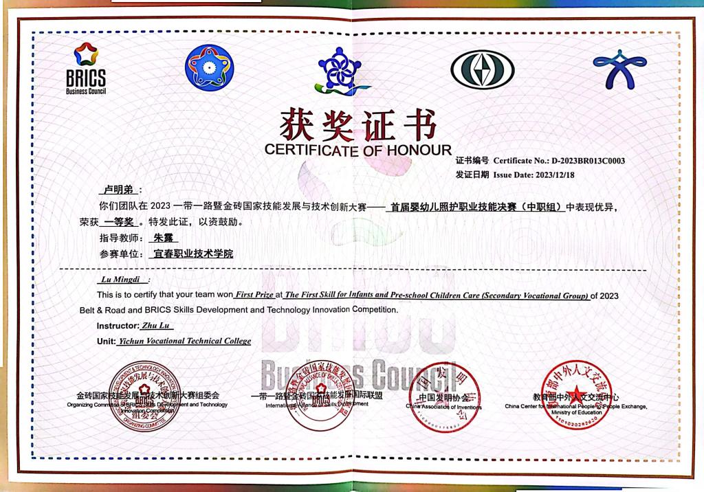 金砖国家技能发展与技术创新大赛是2017年金砖国家最高领导人会晤筹备委员会认可、经中华人民共和国外交部备案、金砖国家工商理事会批准的国际大赛。此次获得国际比赛的大奖,是开云官网师生在技能竞赛中追求卓越、超越自我的体现,也展示了开云官网婴幼儿照护人才培养水平和学校内涵建设所取得成果。