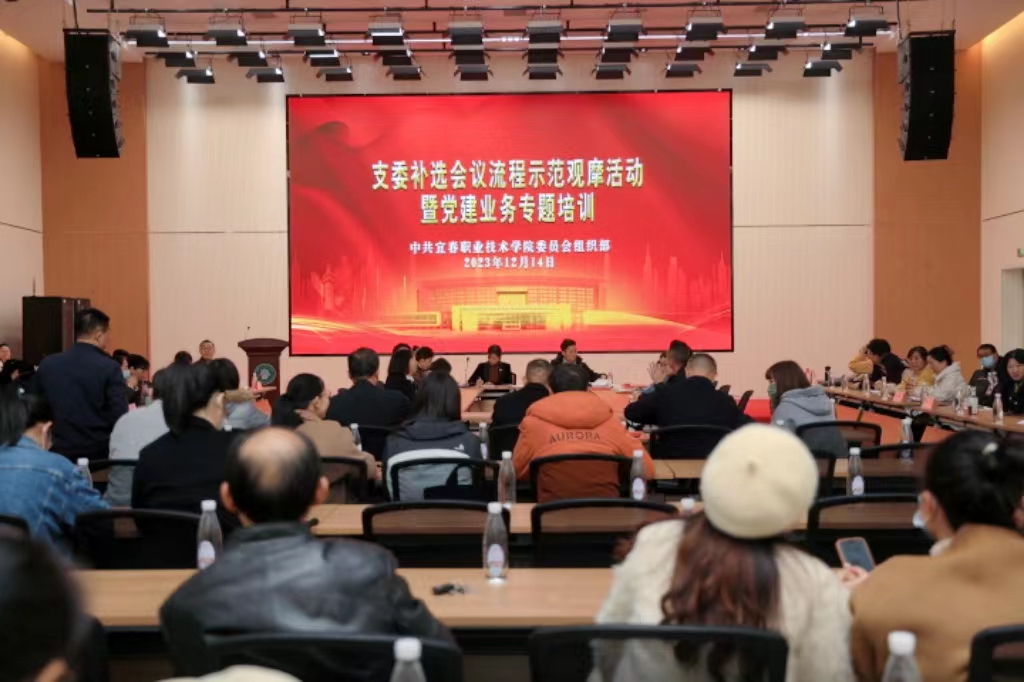 本站讯(机关第二党支部 胡倩)为持续巩固党建“三化”建设成果,12月14日下午,党委组织部联合机关第二党支部在天工楼四楼报告厅举行支委补选会议流程示范观摩活动暨党建业务专题培训。市直机关工委书记蔡秋林、学校党委副书记黄继斌到会指导,部分市直单位、兄弟院校党务干部,学校各基层党组织书记、支委观摩了本次大会,会议由学校机关党委专职副书记龚莎主持。