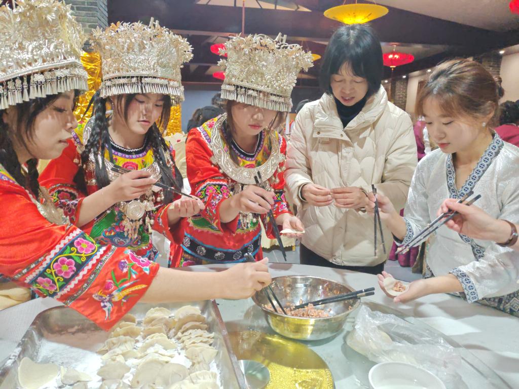 为感受冬至习俗,讲座后还组织了包饺子体验活动。师生亲手调料、和馅、包饺子,现场气氛热烈、其乐融融。少数民族学生保玉妮感慨道:“参加本次冬至活动不仅学习了中华民族传统文化,还学习了包饺子,体验冬至习俗,真的收获满满”。