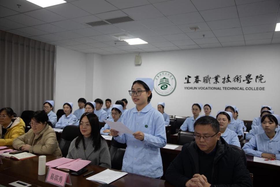 随后,学生代表胡佳玉同学和临床职业导师代姜会玲发言分别发言。胡佳玉认为“华南班”是连接学校与医院、理论与实践的重要桥梁,为学生提供了一个更加广阔的学习平台,在未来的学习生涯中将牢记使命,为现代学徒制培养树立典范。最后她代表华南班全体同学郑重承诺:不负韶华,不负重托,努力学习专业知识,提高专业技能,用实际行动诠释南丁格尔精神。姜会玲说到作为临床职业导师,她将会倾注心血,树立同学们正确的职业价值观,训练扎实的职业技能,脚踏实地地培养学生成长成才,期待各位同学加入华南医院这个充满爱与关怀的大家庭,成为优秀的护理事业接班人员。