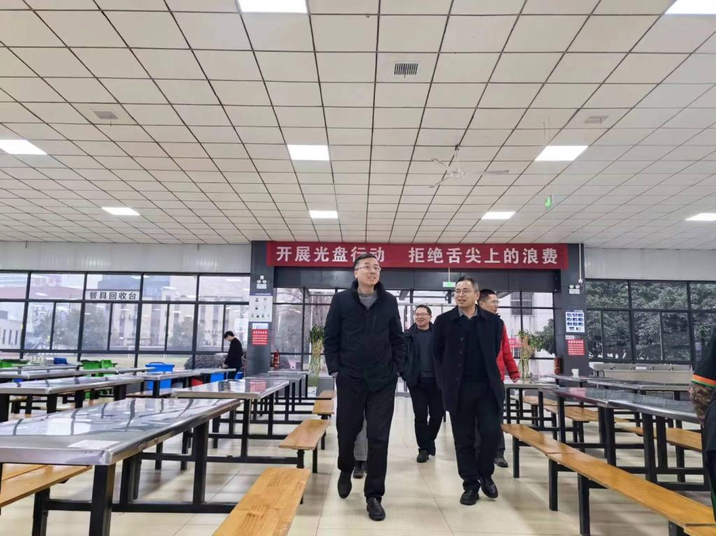 本站讯(技校 刘宜波)告别寒假时光,初春学子归来。正是开学报到日,2月26日下午,校党委副书记、校长邱军,副校长张印华来到南校区指导技校开学工作,关心了解新学期开学工作筹备、校园安全、后勤服务保障、学生返校等情况,技校负责人易开宇带领班子成员陪同检查指导,并作现场汇报。