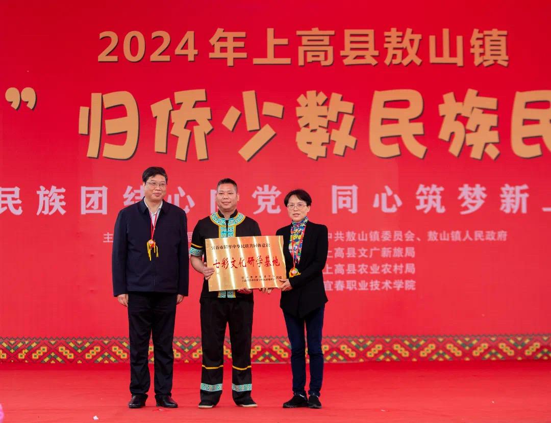 文化节启动仪式上,石军英还为kaiyun开云官方网站与敖山镇洋林村共建的“七彩文化研学基地”授牌。这是校村联合民族团结进步创建工作的新开端,开云官网将持续与洋林村开展“连心共建秀美乡村”,在旅游、文化、教育、电商等方面予以更多支持。希望通过校村联合,共创共建,学校的民族团结进步创建工作能取得更大的进步。(欧阳富萍/摄)